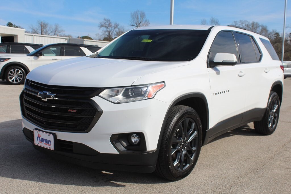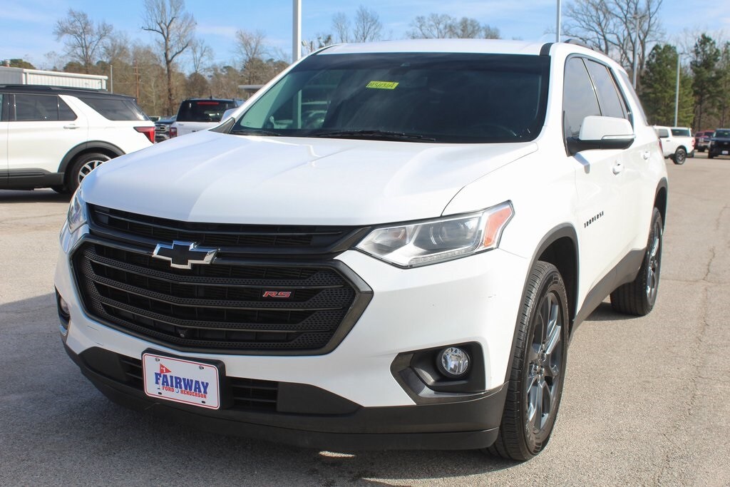 Priced below KBB Fair Purchase Price! Aluminum Wheels, Audio Package, **BACKUP CAMERA**, **BLUETOOTH**, Climate Package, **LEATHER SEATS**, Luxury Package, **PREMIUM WHEELS**, **REMOTE START**, ** HEATED SEATS **, ** DRIVER ASSIST PKG **, * * LANE KEEPING ASSIST * *, ** POWER LIFT GATE **, **APPLE CARPLAY**, ANDROID AUTO, Traverse RS, 4D Sport Utility, 3.6L V6 SIDI VVT, 9-Speed Automatic, FWD, Summit White, Black Leather. CARFAX One-Owner. Clean CARFAX. Awards: * 2021 IIHS Top Safety Pick with optional front crash prevention and specific headlights At Fairway Ford we only offer only the best hand picked vehicles; only a portion pass our rigorous inspection/reconditioning process! This one PASSED and is a FAIRWAY preferred vehicle! It comes with a FREE CARFAX vehicle history report. Financing Available on all vehicles along with our Vehicle protection program. We believe in MARKET VALUE PRICING all vehicles in our inventory. We use real-time Internet price comparisons to constantly adjust prices to provide ALL BUYERS FAIRWAY'S BEST PRICE possible. We do not mark them up, to mark them down. CALL NOW (903)657-2566.
