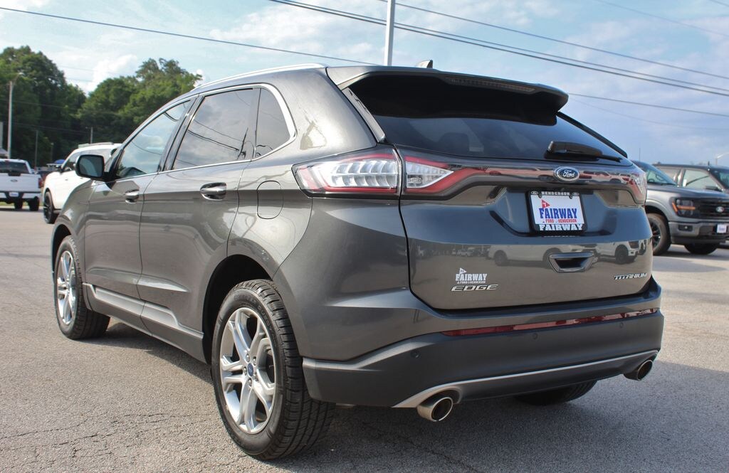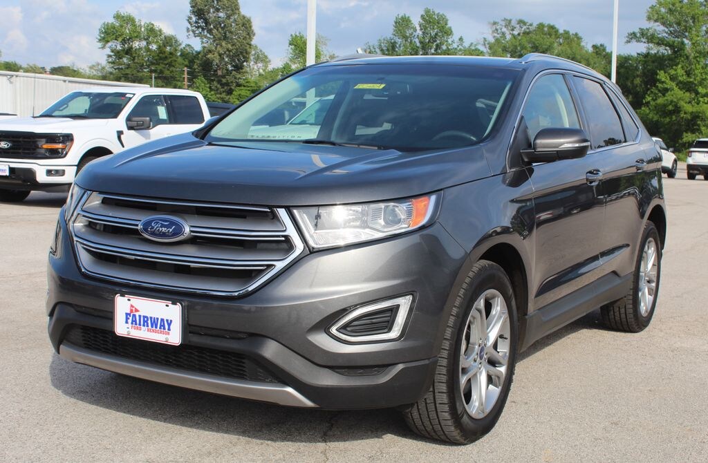 Recent Arrival! Aluminum Wheels, Audio Package, **BACKUP CAMERA**, **BLUETOOTH**, Climate Package, Heat Package, **LEATHER SEATS**, Luxury Package, **NAVIGATION**, Power Package, Premium Package, **PREMIUM WHEELS**, **REMOTE START**, Technology Package, ** HEATED SEATS **, ** DRIVER ASSIST PKG **, * * LANE KEEPING ASSIST * *, ** POWER LIFT GATE **, **APPLE CARPLAY**, ANDROID AUTO, Edge Titanium, 4D Sport Utility, 3.5L V6 Ti-VCT, 6-Speed Automatic, FWD, Magnetic Metallic, Ebony Leather, 110V/400W AC Power Outlet, Auto-Dimming Driver's Sideview Mirror, BLIS Blind Spot Information System, Radio: AM/FM Stereo w/Single CD/Navigation, Remote Start System, SiriusXM Radio, SiriusXM Traffic & Travel Link, Technology Package, Wheels: 19 Nickel-Painted Aluminum. CARFAX One-Owner. Awards: * 2017 KBB.com Brand Image Awards * 2017 KBB.com 10 Most Awarded Brands At Fairway Ford we only offer only the best hand picked vehicles; only a portion pass our rigorous inspection/reconditioning process! This one PASSED and is a FAIRWAY preferred vehicle! It comes with a FREE CARFAX vehicle history report. Financing Available on all vehicles along with our Vehicle protection program. We believe in MARKET VALUE PRICING all vehicles in our inventory. We use real-time Internet price comparisons to constantly adjust prices to provide ALL BUYERS FAIRWAY'S BEST PRICE possible. We do not mark them up, to mark them down. CALL NOW (903)657-2566.