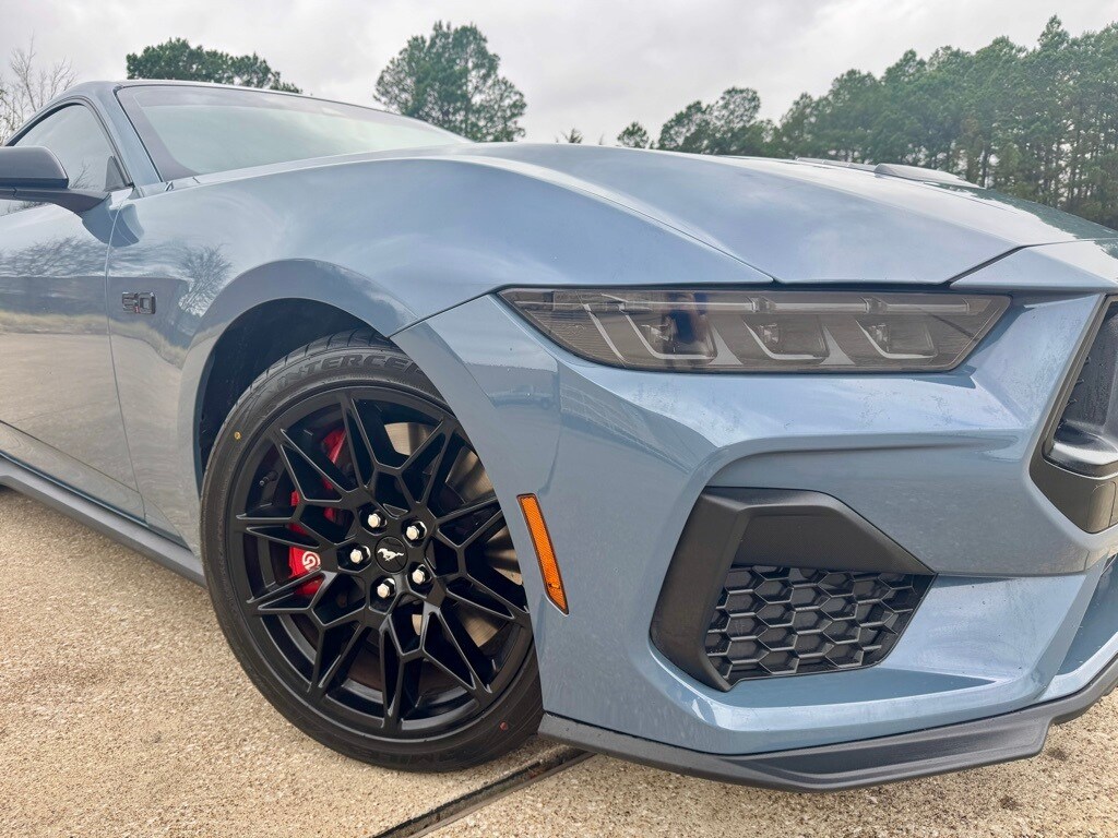Purchased brand new Dec. 2024. It was a special order for a customer that finally couldn't wait any longer. Their loss my gain! Was the Vapor Blue I was in love with, had active exhaust and 10 speed auto . Would have liked and ordered the upgraded stereo but 6 speakers is fine especially since I enjoy listening to the 5.0 coyote better. The ride is very smooth and comfortable for a 4000 lb pony car. The 4th gen coyote is quite the upgrade from the previous gen 5.0 in My 19 F-150 but is comparing apples to oranges. Main 13.2 screen is a bit slow loading but very visable even in the bright Az sun. My 4th Mustang, first car in 1974 was a 65 Mustang. I am a bit biased being from Michigan and a lifelong ford man, except late 70s thru the early 20s when I was a import car guy. Mustang Gts Rock!!!…